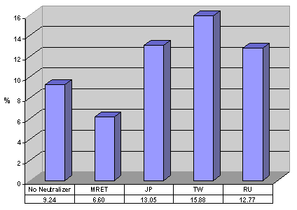 without MW radiation protective devices (neutralizers). The mean values are statistically